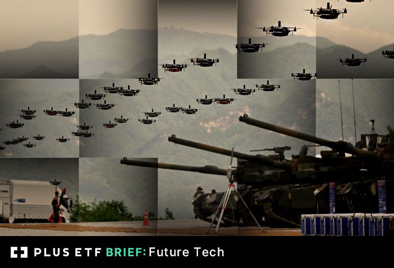 KDEF’s core holdings (as of 12/04/25), Hanwha Aerospace, LIG Nex1, Hanwha Systems, and Korea Aerospace Industries*, sit at the center of a global shift toward autonomous warfare technologies. Think automated artillery, AI-guided loitering drones, and autonomous targeting systems designed to shrink decision time from minutes to seconds. Korea’s Defense Innovation 4.0 strategy accelerates government-backed investment in AI-enabled artillery, loitering munitions, autonomous UAVs, and battlefield decision-support systems. [1]